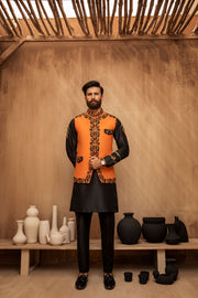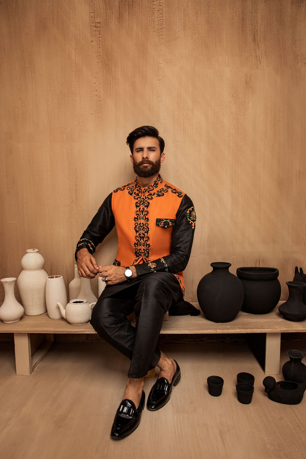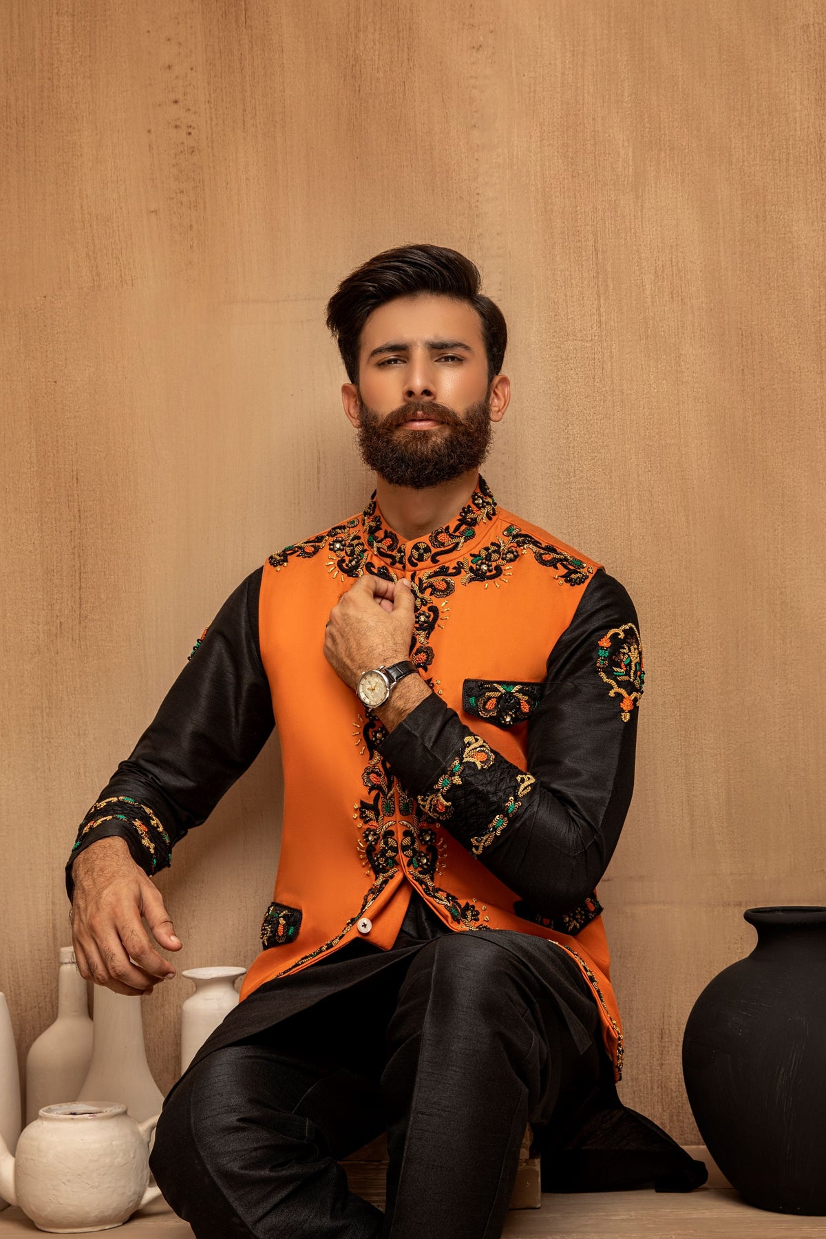 Vibrant and unique, Orange waistcoat with fully hand embellished work